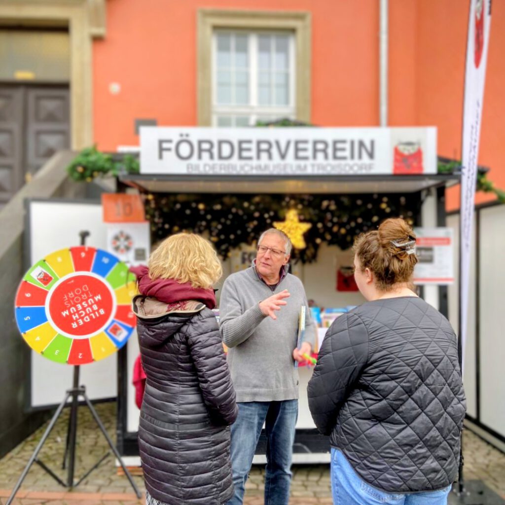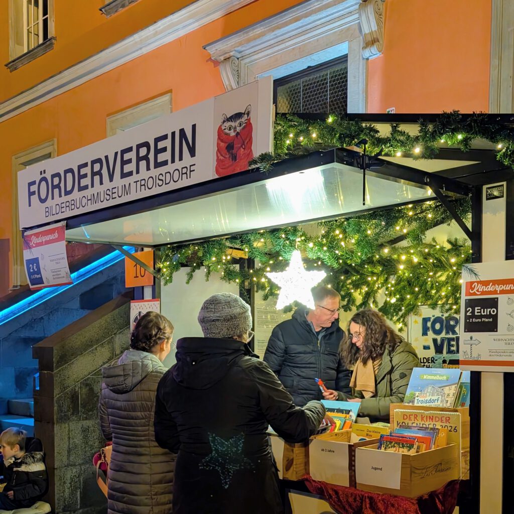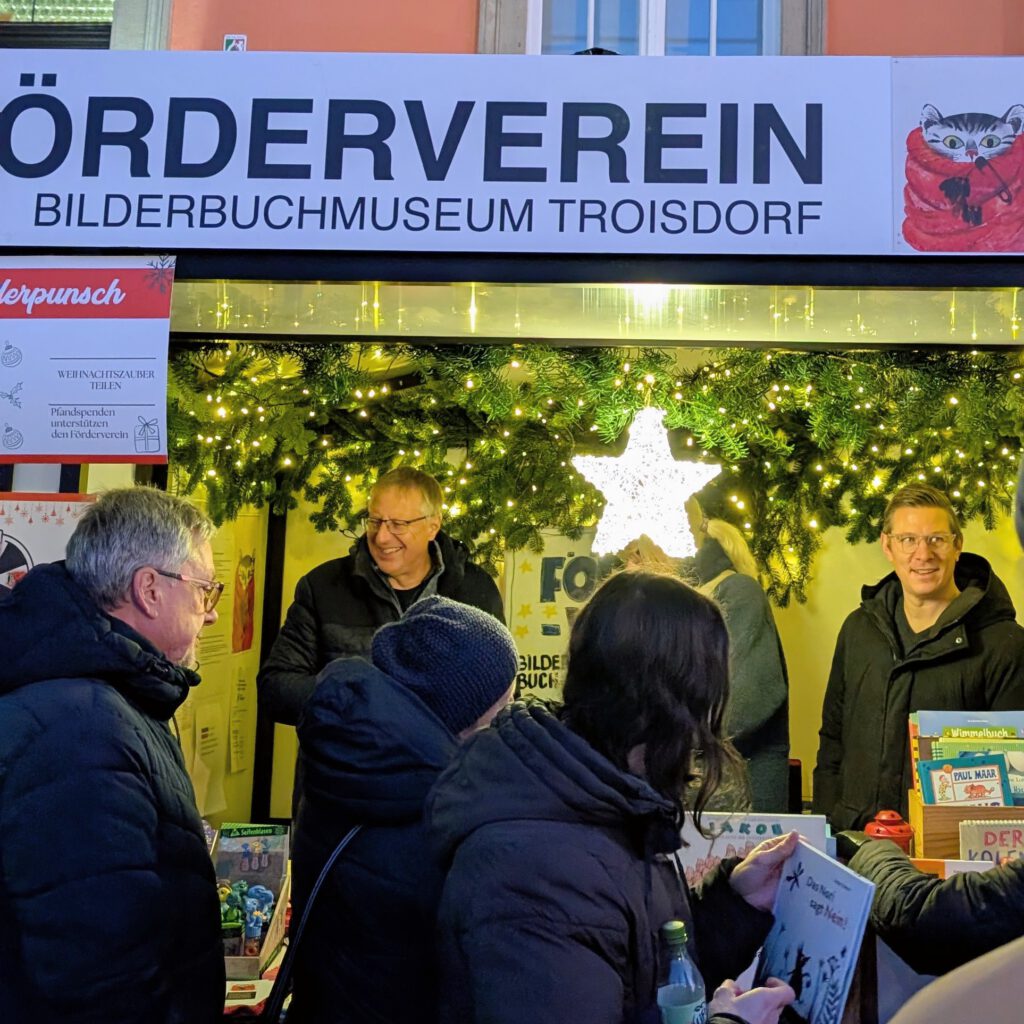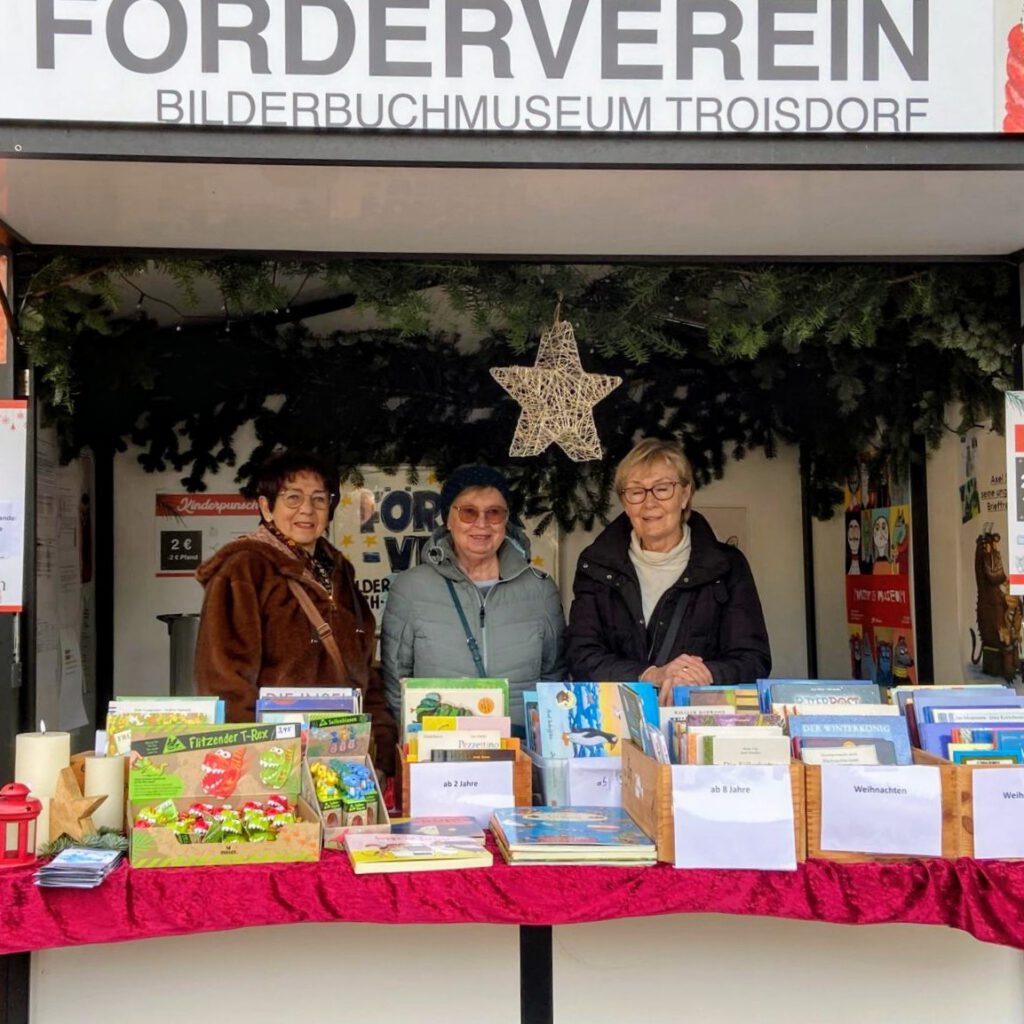 Der Förderverein des Bilderbuchmuseums blickt auf einen rundum gelungenen Weihnachtsmarkt an der Burg Wissem zurück. An allen Markttagen war der Stand des Fördervereins ein beliebter Treffpunkt für große und kleine Besucherinnen und Besucher und zeigte damit einmal mehr, welchen Stellenwert das Bilderbuchmuseum in Troisdorf und darüber hinaus genießt.